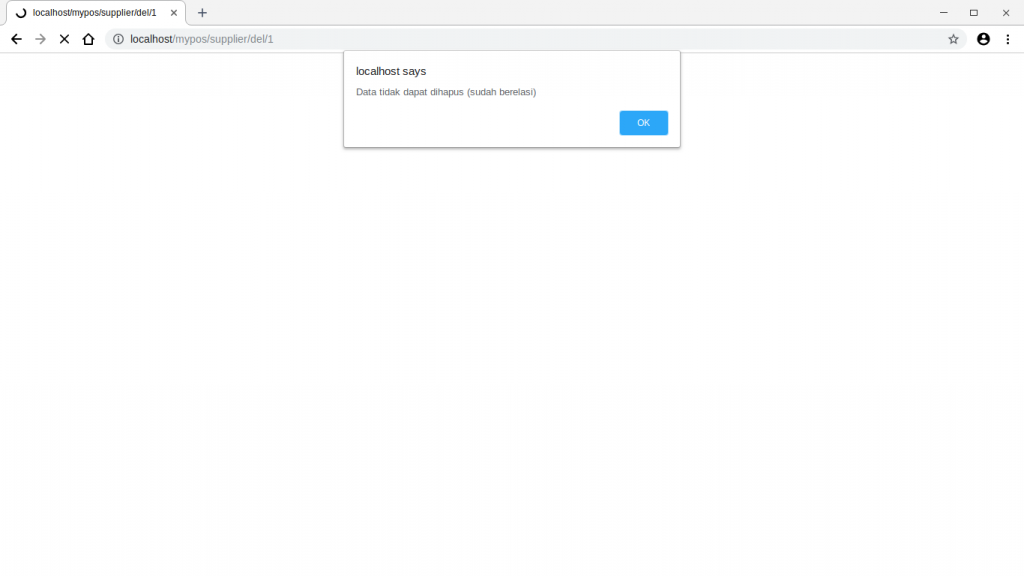 Kali ini adalah tutorial bonus seri POS, yaitu membuat custom pesan error menjadi “data tidak dapat dihapus” ketika data ingin dihapus pada data tabel berelasi dengan CodeIgniter / PHP.