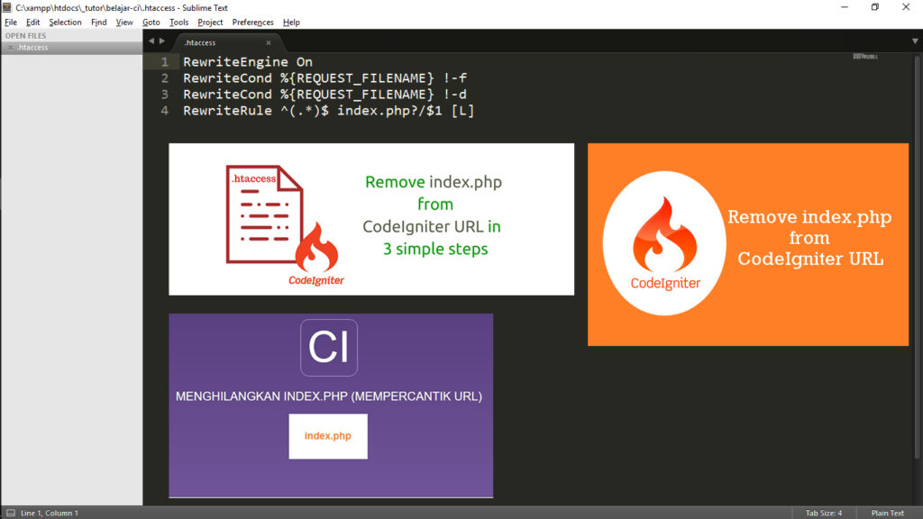 Sebelum melanjutkan tutorial selanjutnya, kali ini YukCoding akan berbagi sedikit tips trik untuk mempercantik URL pada CodeIgniter, yaitu dengan menghilangkan index.php